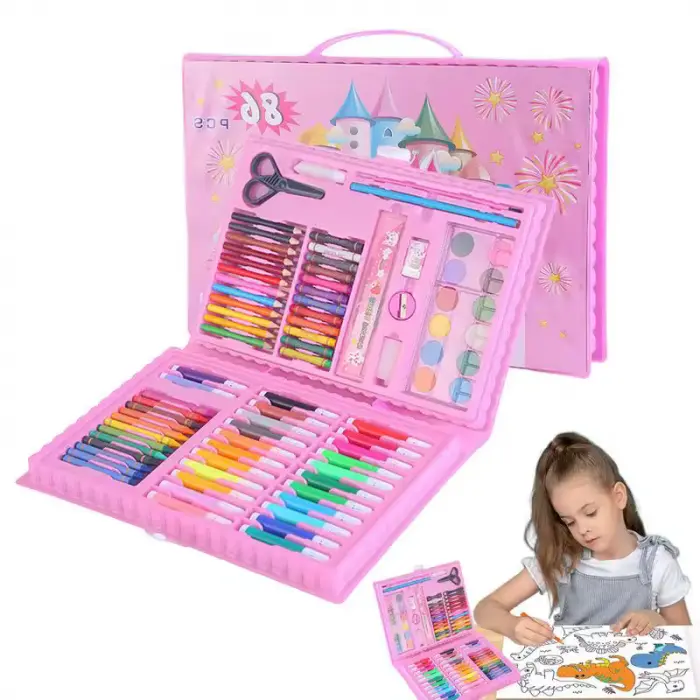 Estuche Valija Lápices y Marcadores 86 Piezas Rosa