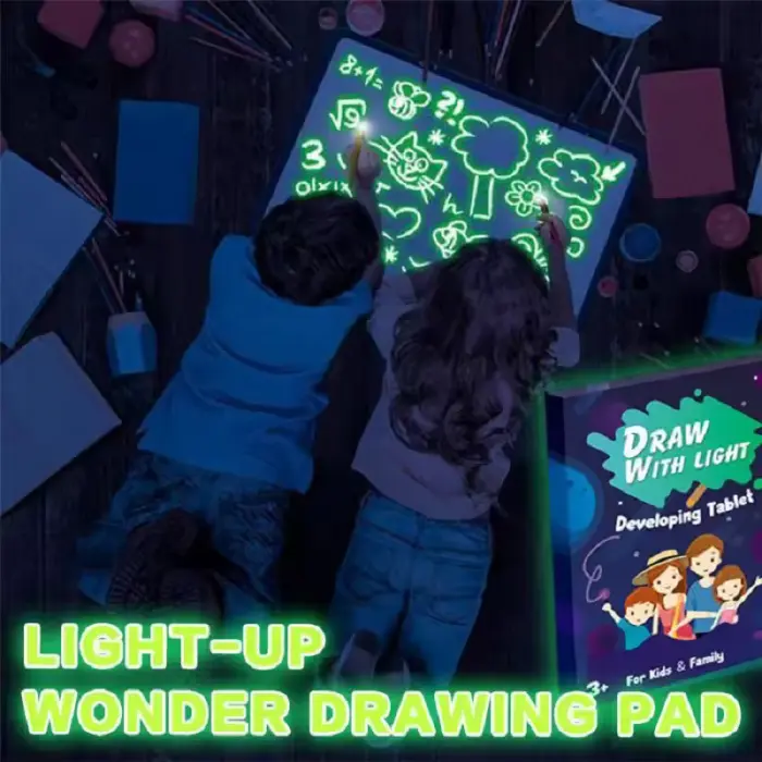 Pizarra lumínicaTamaño A4Incluye: pizarra, bolígrafo lumínico, tarjeta con letras